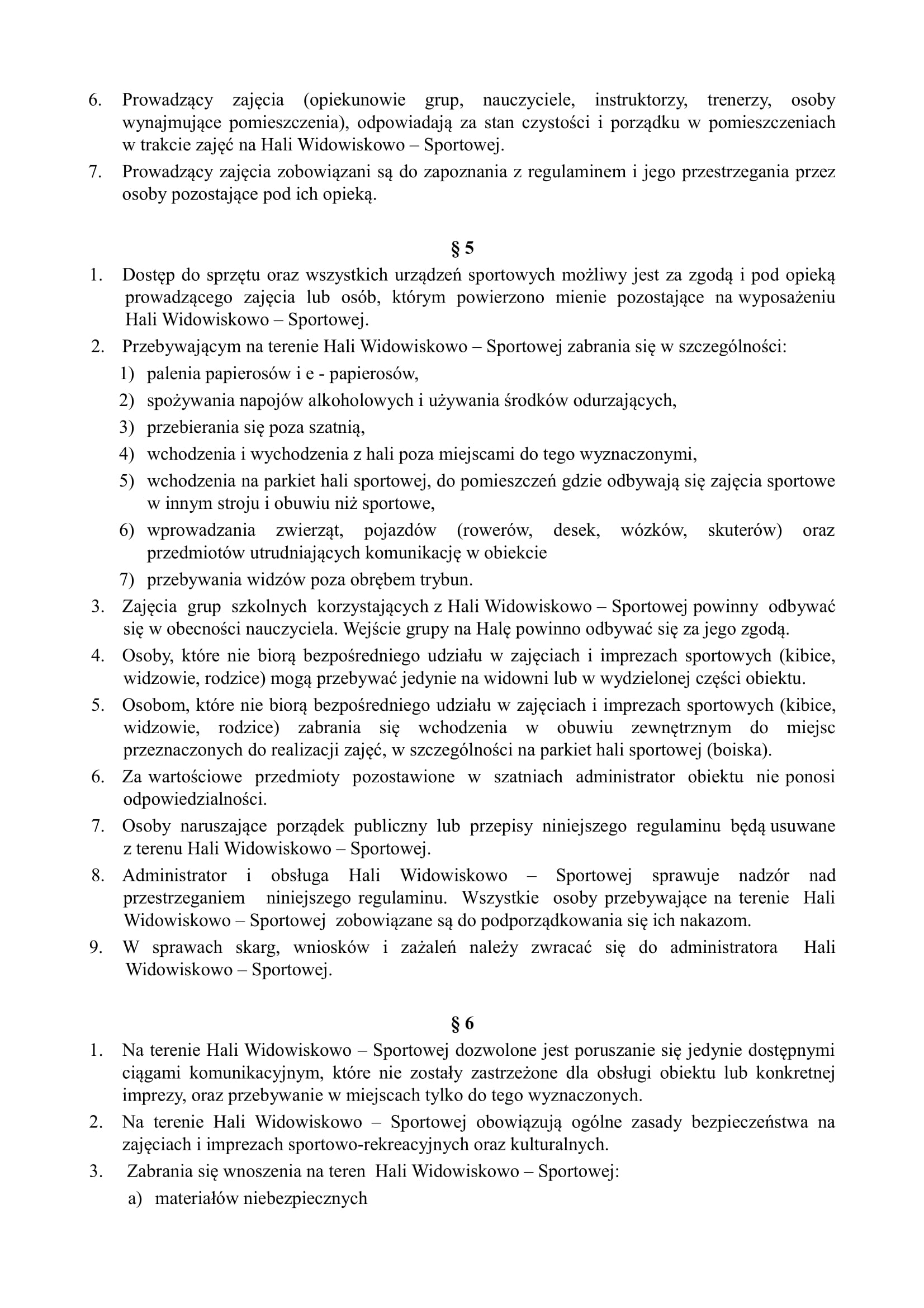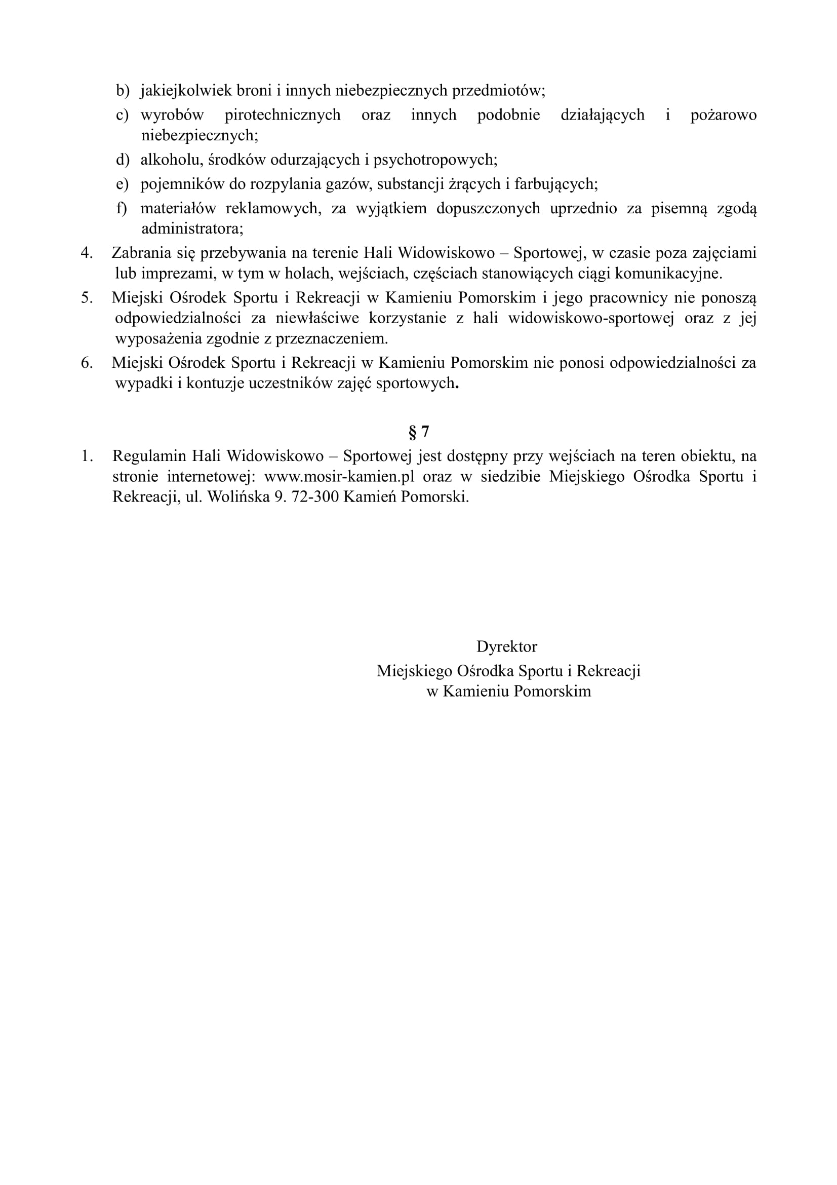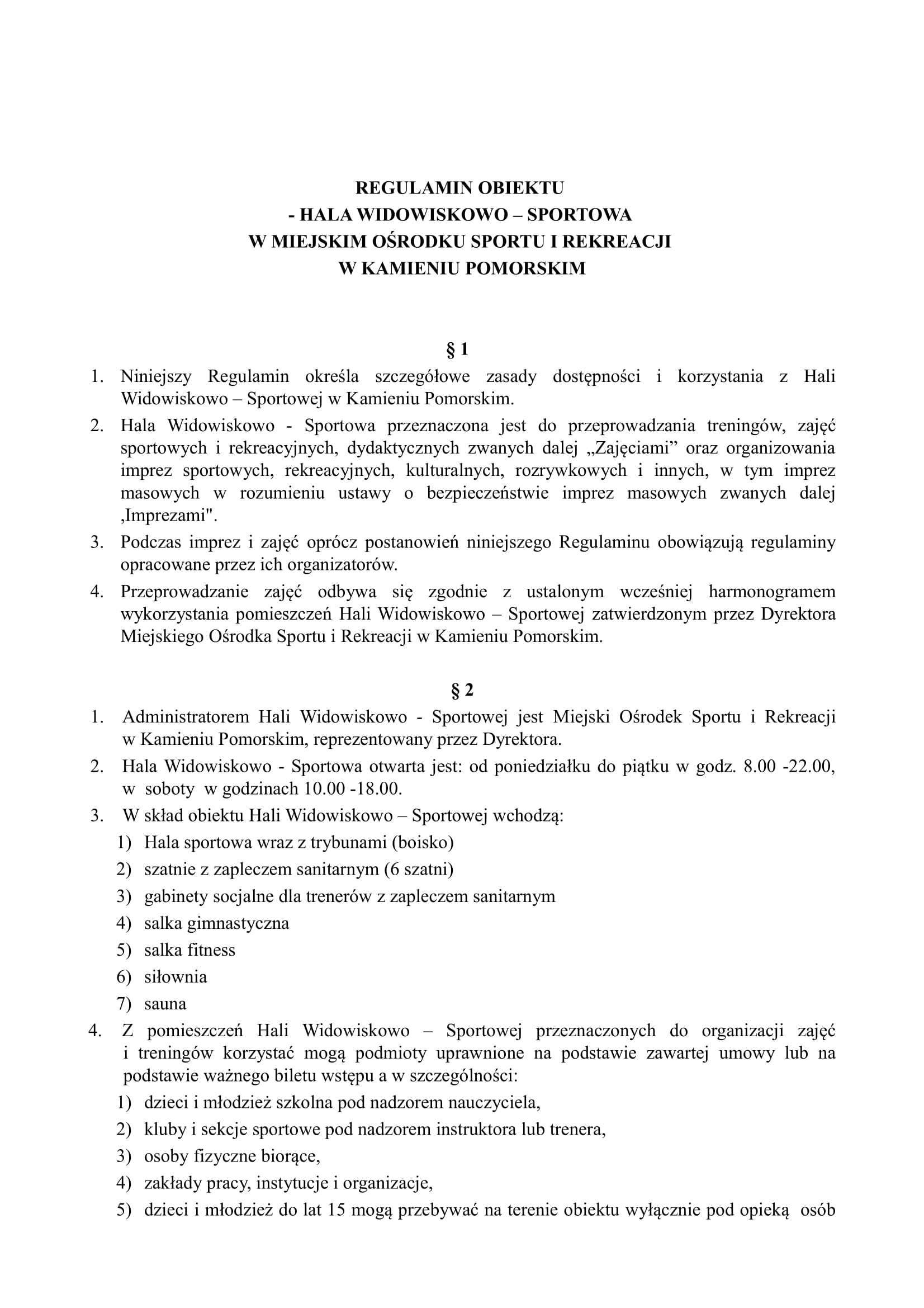 Obiekt stanowi doskonałą bazę do uprawiania sportu i organizowania widowisk artystycznych.